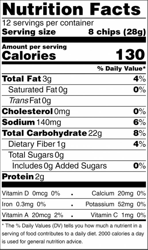 Made with just 5 ingredients: Organic Corn, Sunflower Oil, Sea Salt, Water, & Lime (Calcium Hydrate).